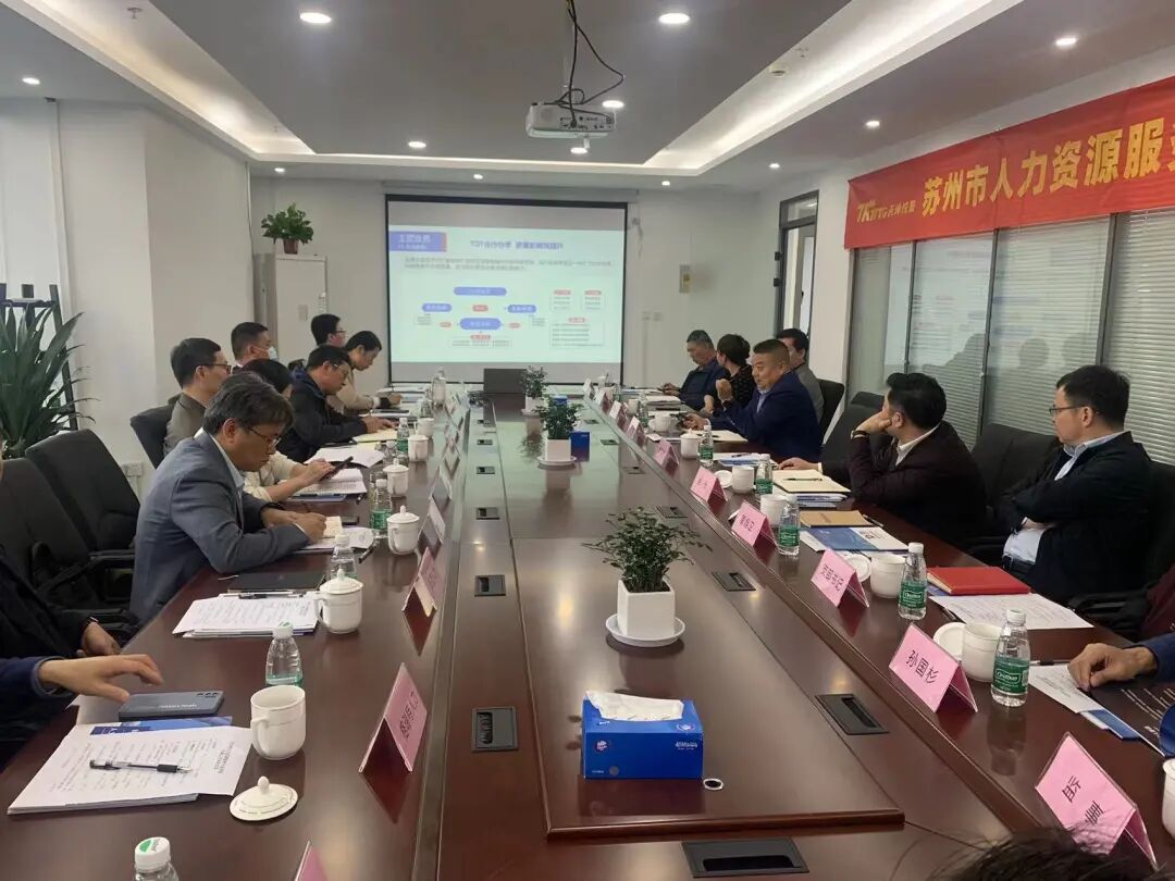 在集团董事长田正军的陪同下,苏州市人力资源服务行业协会领导先后参观了天坤控股集团文化展厅、员工办公区等区域,并听取了关于集团概况、核心产业、未来战略规划等介绍。随后双方进行了座谈交流。