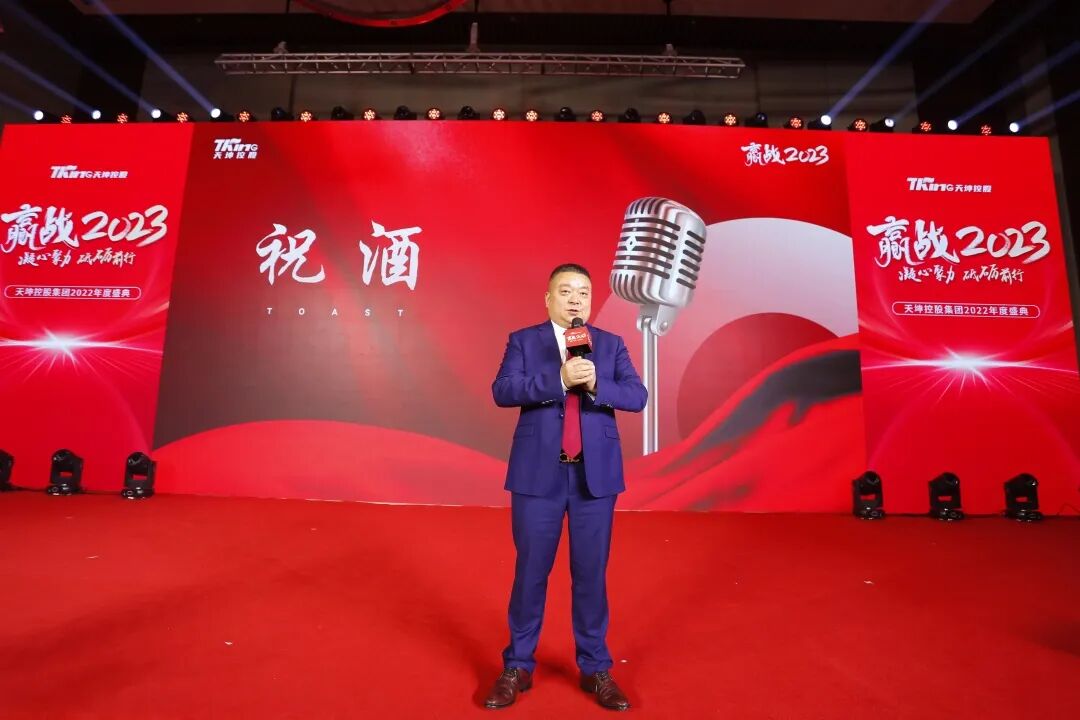 紧接着,董事长田正军先生发表致辞,他首先对公司在2022年度取得的成绩表示了赞赏和感谢,同时也对公司未来的发展做出了展望和规划。他强调了天坤控股的核心价值观和发展战略,鼓舞了在场所有人的士气和信心。